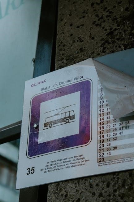 The availability of a detailed bus timetable‚ often in PDF format‚ is crucial for planning journeys effectively. This timetable provides essential information such as departure times‚ arrival times‚ and the stops along the route. Understanding the nuances of this timetable ensures a smooth and predictable travel experience.