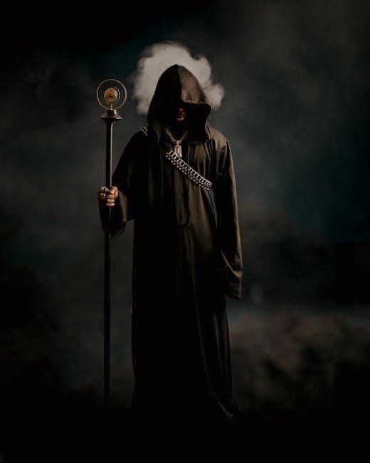 The Shadow of the Weird Wizard PDF boasts a striking visual style that blends dark fantasy with gothic horror elements․ The art direction emphasizes haunting, atmospheric imagery, with muted color palettes and dramatic shadows that evoke a sense of foreboding․ Intricate illustrations of characters, monsters, and environments immerse players in the grim world, while symbolic motifs and eerie landscapes reinforce the game’s themes of decay and mystery․ The visual style is consistent throughout, creating a cohesive and immersive experience that draws players deeper into the game’s unsettling atmosphere․